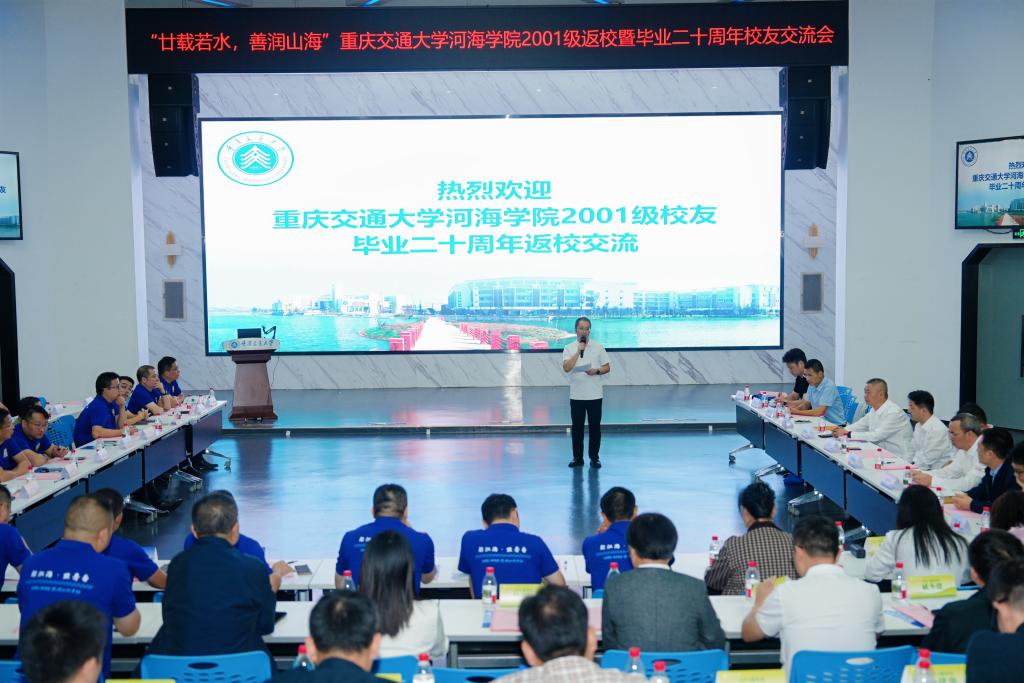 师生座谈交流环节成为活动的“暖心高潮”。校友们结合自身经历,分享二十载奋斗历程中的感悟与收获:有的深耕自贸区建设一线,剖析区域发展新机遇与母校专业培养的契合度;有的投身重庆城市更新,讲述如何将在校期间的工程实践知识转化为破解建设难题的实效;还有的扎根水利工程、航道事务、能源贸易等领域,细数如何将“明德行远,交通天下”的校训融入每一个项目攻坚、每一次技术突破,让交大精神在行业一线落地生根。师长代表分别从不同视角传递牵挂与期许,有的回顾了二十年前与校友们朝夕相处的点滴,叮嘱大家“无论走多远,母校永远是你们的港湾”;有的结合学科发展,鼓励校友们在水利水运领域持续深耕,践行“治水兴邦”的使命;有的分享国家级科研平台的最新科研进展,向校友发出“产学研合作”的邀约,期待携手破解行业技术难题、共促产业升级。