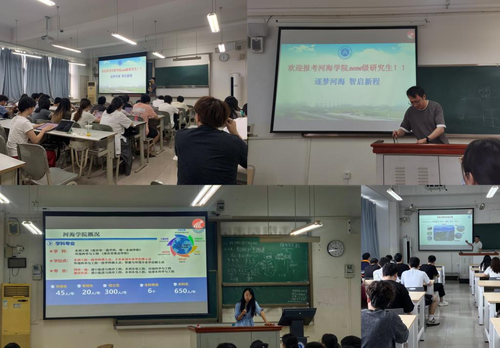 活动三:招生宣传进课堂。9月15日至9月19日,陈垚、犹伟等8位任课老师针对水利水电工程系等5个本科专业的大三、大四学生开展了招生宣传进课堂的活动。老师们利用课余或课中5-10分钟,重点介绍了学院的学位点、各专业研究方向、2026年招生计划等内容,使同学们对本院有了充分全面的认识,特别是对本专业老师的前沿研究方向有了进一步的了解。