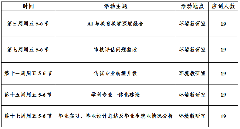 环球360管理系统入口2024-2025学年第二学期环境科学与工程教研室(系)教研活动计划表