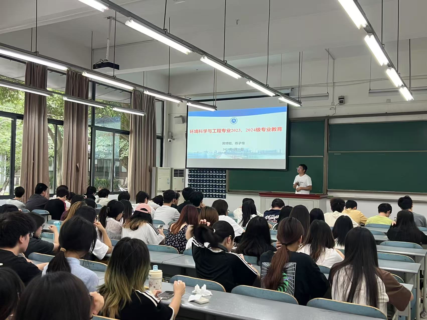 为深入认识本科教育教学模式改革,提升人才培养质量,环境科学与工程专业于2025年6月24日开展了2023、2024级本科生专业教育。本次会议旨在明确第三学期前沿微课新要求与新方向,解释培养方案涉及到的选课具体要求与注意事项,由黄博聪、陈子惟两位老师主讲。