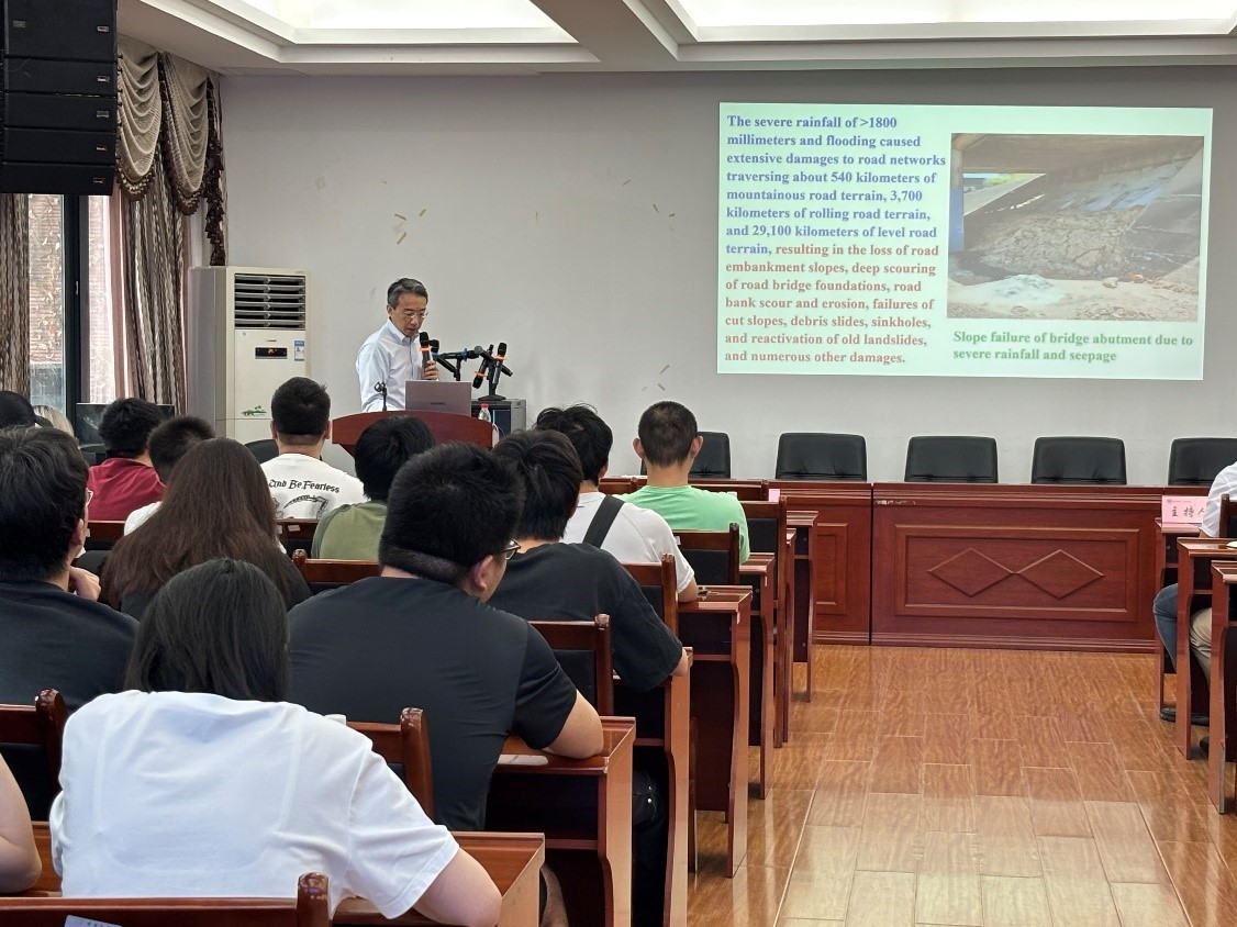 讲座中,Sassa教授围绕冲刷与侵蚀力学机制及防治措施最新成果展开,系统覆盖公路路基冲刷、桥梁冲刷防治、海岸侵蚀、海洋工程海床液化防控、内部侵蚀、海洋离岸结构物周边冲刷六大方向,并结合美洲、欧洲、亚洲及大洋洲的典型案例深化讲解。互动环节,师生积极提问,Sassa教授逐一解答,现场学术氛围浓厚,参会师生表示讲座为后续科研与实践提供重要启发。