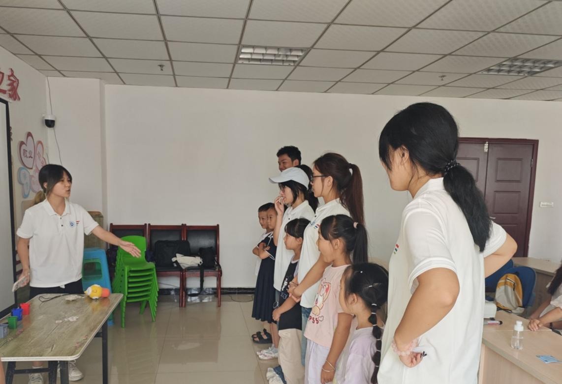 上午,活动分为两个并行的分支展开。一部分团队成员在社区内执行问卷调查任务,而另一部分则在社区活动中心负责组织“环保小课堂”。在小课堂环节中,实践团队成员不仅为社区儿童提供了学业辅导,帮助他们解决学习上的难题,还通过环保知识的问答和趣味性的游戏,以轻松愉快的方式培养孩子们对绿色环保的关注和兴趣。