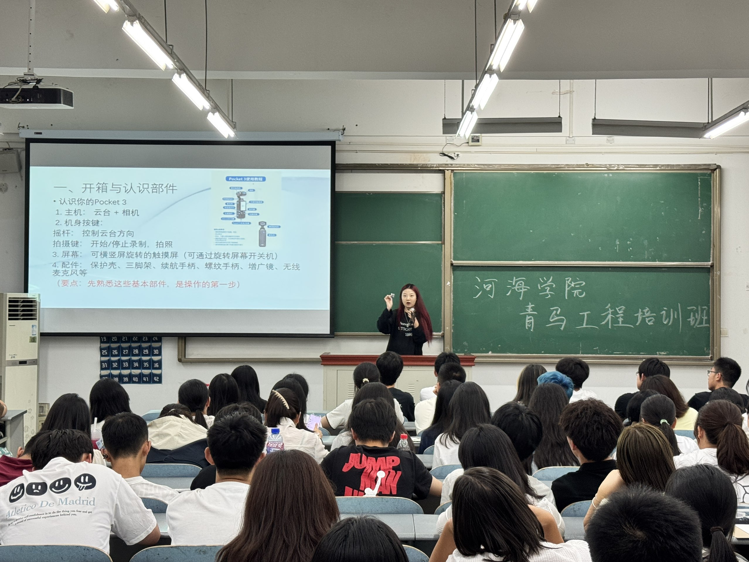随后,优化宣传工作的培训会正式拉开帷幕。学院新媒体中心部长苗子涵同学向学员们详细讲解并演示了大疆云台相机的使用规范与操作技巧。董婉婷老师则围绕“校园新闻写作与摄影实务”为主题进行了专项培训,从新闻稿的结构布局到活动摄影的构图与抓拍技巧,逐一进行了细致入微的指导,内容既实用又具有针对性。此次专项培训不仅帮助成员系统地掌握了新媒体工作的核心技能,还显著提升了团队的整体业务水平。