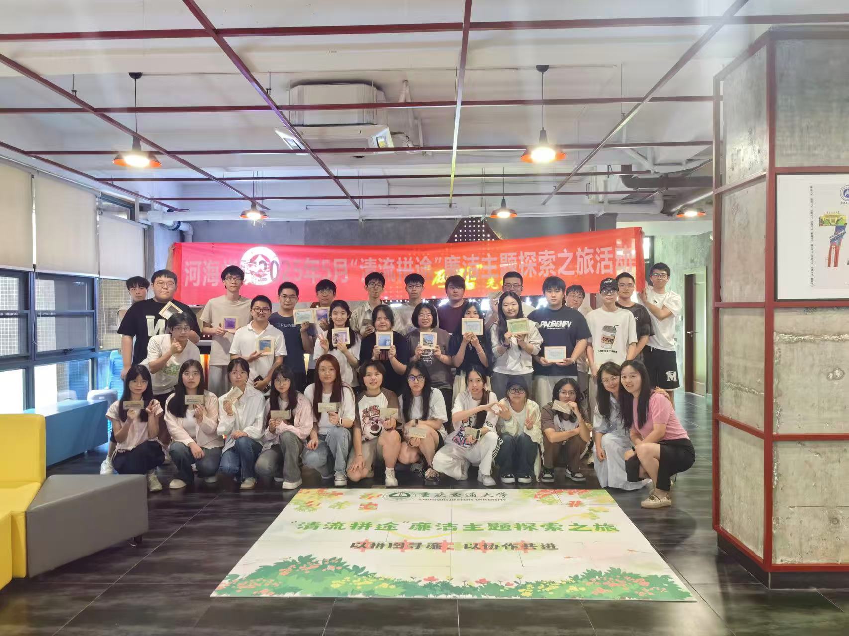 活动以充满趣味与挑战的“竞速拼图”破冰。赛场上,参赛团队争分夺秒,全神贯注地完成廉洁主题拼图任务。这不仅是一场团队协作速度的较量,更是对团队成员理解“清廉元素”能力的考验。随着一块块拼图精准嵌入,廉洁文化的轮廓逐渐清晰。完成拼图后,各团队携手创作“清流拼途”廉洁主题探索之旅主题作品,生动诠释“个人廉为基,集体廉成势”的深刻内涵,让廉洁的种子在团队协作中生根发芽。