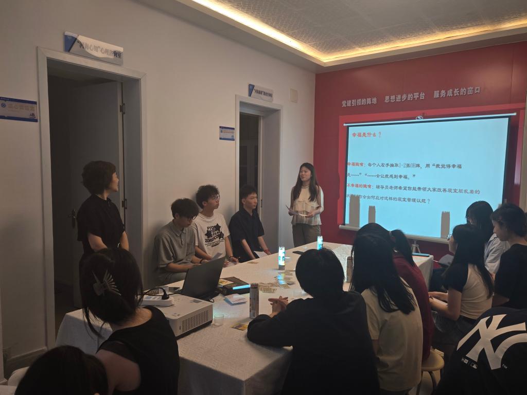 在绘制“幸福生态图”时,成员们勾勒滋养个人生命核心的关系图景和精神源泉。活动浓厚的党建元素为内容注入了新意:不少学生干部画中出现了服务同学的“先锋岗”,普通同学则描绘了象征信任与交流的“党员倾听站”。一幅幅图画清晰展现了彼此心底期待构筑的支持网络雏形,无声诉说着共建温暖集体的愿望。