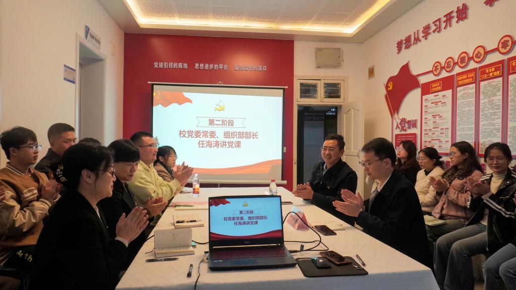 与会领导、师生共同为“交小菁”学生支部委员会举行揭牌仪式。仪式后,支部开展主题党日活动,任海涛为全体党员讲授“第一堂党课”。
