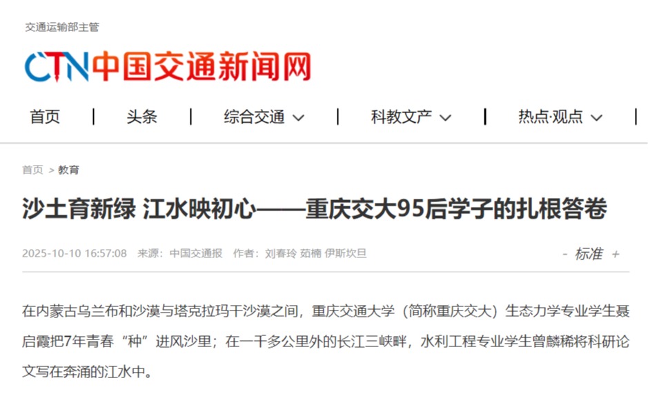 中国交通报:沙土育新绿 江水映初心——重庆交大95后学子的扎根答卷