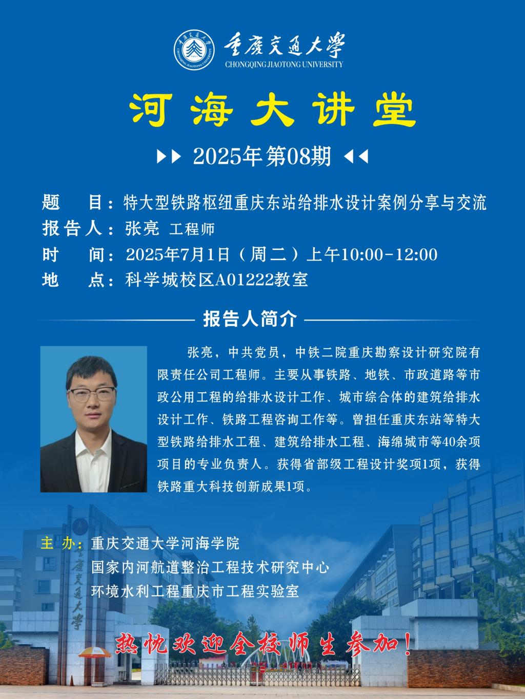 【河海大讲堂】张亮 工程师:特大型铁路枢纽重庆东站给排水设计案例分享与交流