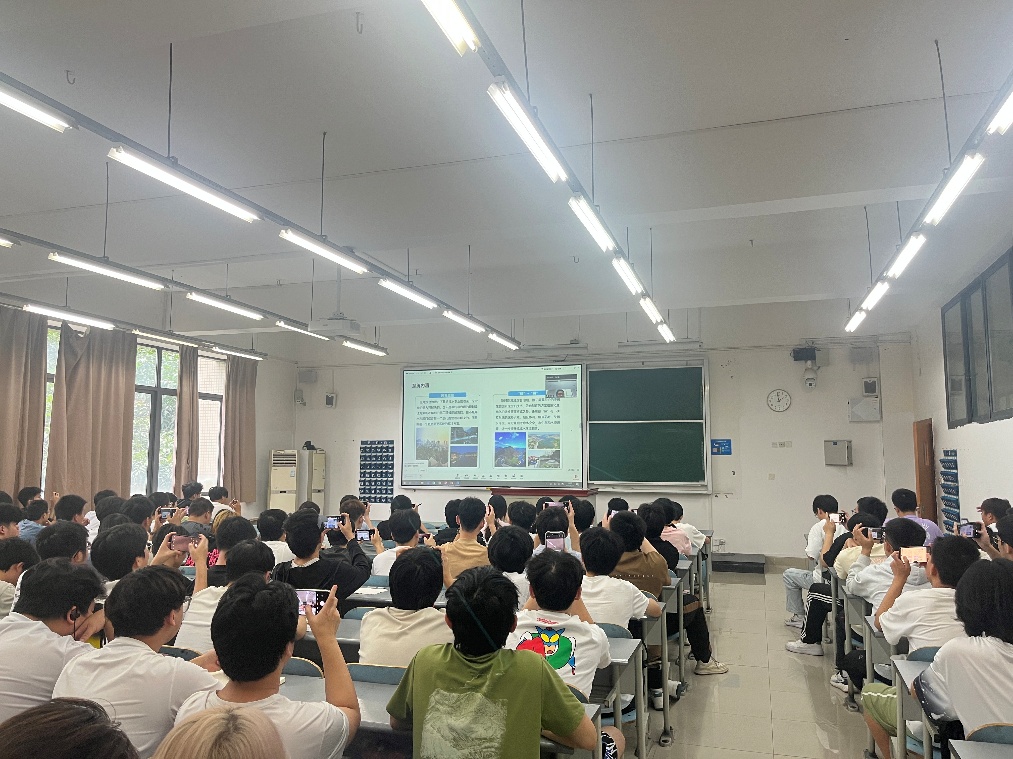 互动环节中,在会同学提出了“供水不足或者排水污染,也就是水量和水质的问题,先破坏小水循环还是大水循环呀,对我们生活影响有啥区别?”。王教授结合长江经济带等区域治理实践认为以影响小水循环为主,同时呼吁青年学者关注跨学科研究与技术创新的结合,鼓励学生将专业知识与实际生态保护需求深度融合。