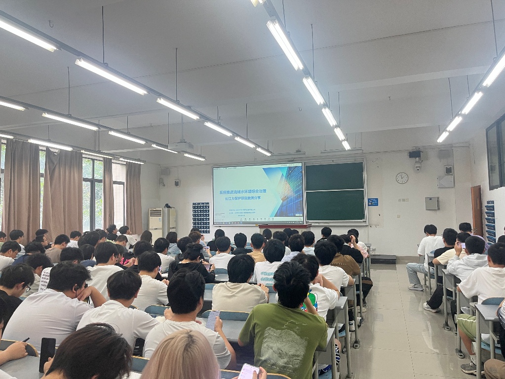 讲座中,王教授系统梳理了流域环境治理从传统单一治理向系统综合治理转变的发展历程。岳阳作为长江大保护首批四个示范城市之一,于2018年启动中心城区污水系统治理工程。在谈到岳阳长江大保护项目时,王教授详细介绍了该项目从问题诊断到工程实施的全过程,展示了系统思维在流域治理中的实际应用效果,让同学们了解真实工程中的问题诊断、技术选择、实施难点及解决方案。